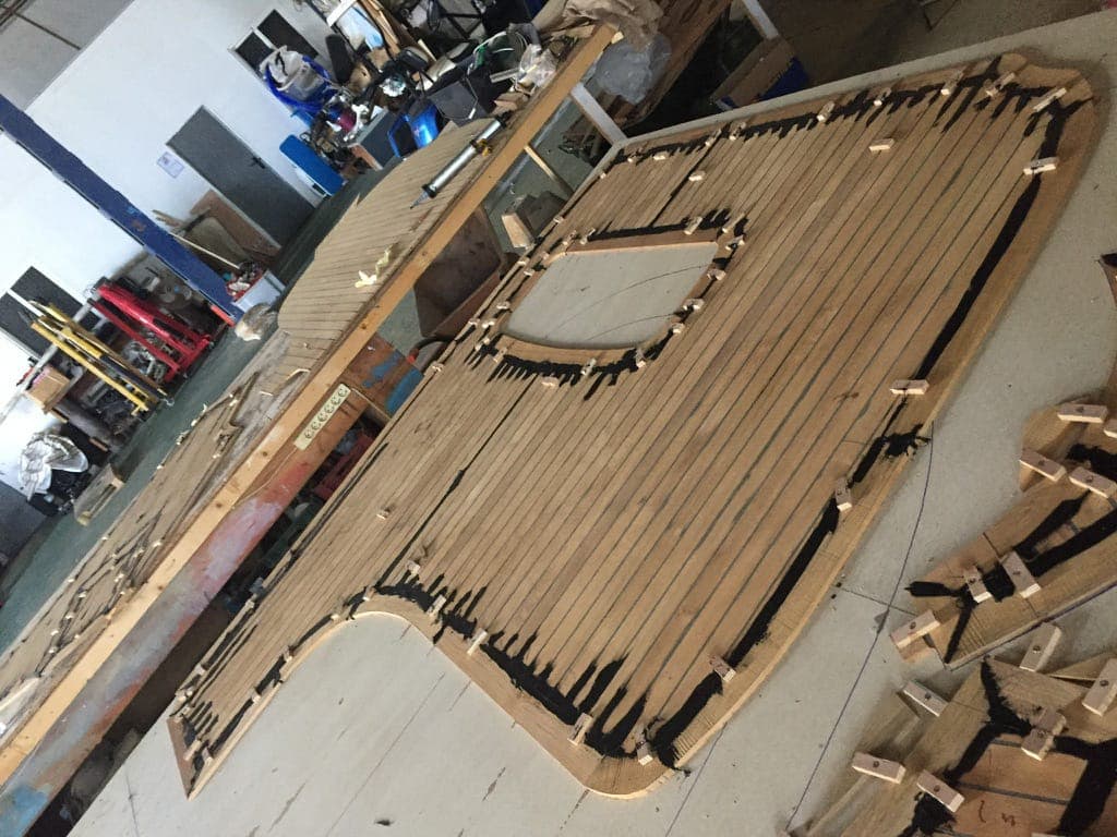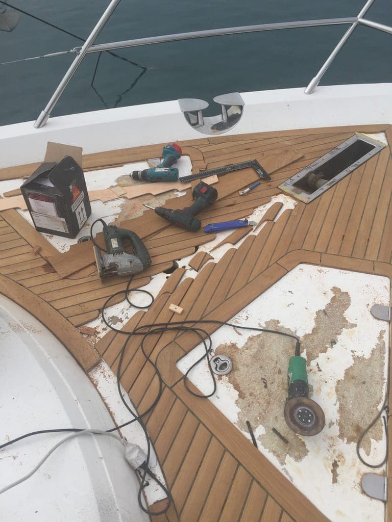 Works carried out on the teak deck of this Sunseeker vessel